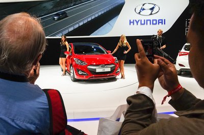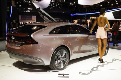 Jellegzetes koreai szépség a Hyundai prototípusa mellett