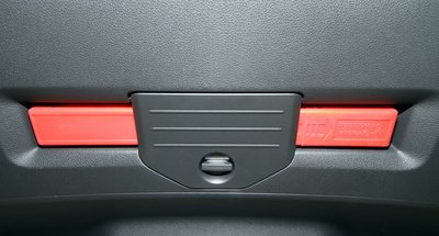 A csomagtérajtóban alakítottak ki tárolóhelyet az elakadásjelző háromszögnek, így könnyen hozzáférhető, ha netán szükség lenne rá