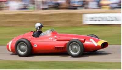 A Fangio, Moss és Behra által vezetett 250F bemutatója minden évben hatalmas tömeget vonz Goodwoodba