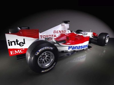 Modernizmus és letisztultság: a Toyota TF105, még mielőtt mindent eltakartak volna a kiegészítő szárnyak. Ez volt a Toyota legsikeresebb Forma-1-es autója