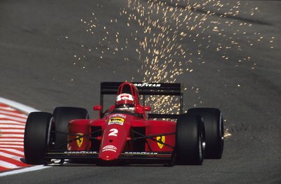 John Barnard főműve a fioranói próbapályán. Barnard 1990 nyarán távozott a Ferraritól, így egy másik angolra, Steve Nicholsra maradt az autó tökéletesítésnek feladata