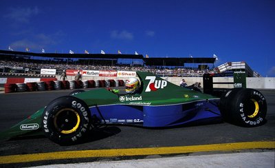 Michael Schumacher az 1991-es Belga Nagydíj edzésén. A gyors német érkezése nagyban hozzájárult ahhoz, hogy mindenki megjegyezze a csodás formájú Jordan 191-est