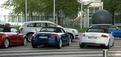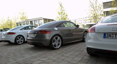 TT-k sorban. Volt dízel, kétliteres TFSI 211 lóval, TT S 272-vel és TT RS 340-el. A nyitott verziót meghagytuk a szőke, oroszul beszélő kolléganőknek