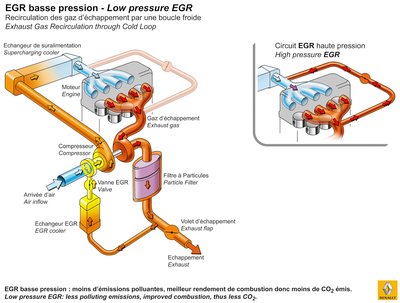 Balra az új, kisnyomású EGR-kör, jobbra a hagyományos, nagynyomású