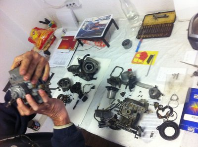 A karburátoros szakműhelyben természetesen műtőaszatlon fekvő Strombergeket is meg lehet tekinteni