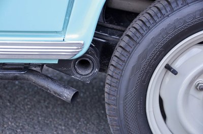 Ezen az oldalon hátrébb van a kerék a keresztben levő torziós rugó miatt, látszik az ajtó mögött maradó lemezrész szélességén