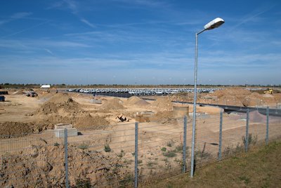 Így néz ki a Panamera-Cayenne összeszerelő üzem jelenleg. A jobbra fent elterülő mezőre terjeszkednek most. Érdekes, de logisztikai raktár nincs, 0,8-as átfutással kerülnek beszerelésre az alkatrészek. Ez azt jelenti, hogy önmagukban nem állnak többet (ha