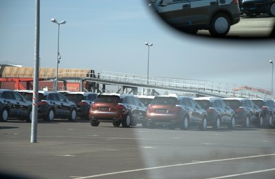 Ilyen vagonokra pakolják fel az elszállításra váró Panamerákat-Cayenneket