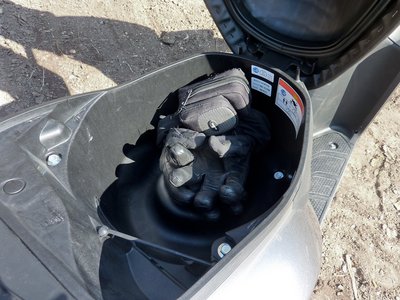 Ott pont elfér a tárcsalakat. Kár, hogy nem a gyújtáskapcsoló nyitja a sisaktartót