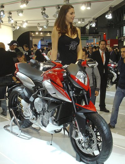 Az MV Agusta nem tud csúnya motort csinálni, de a Rivale mellett a lány is csinos darab