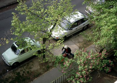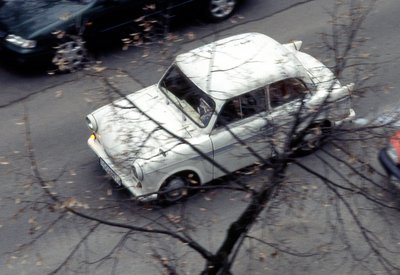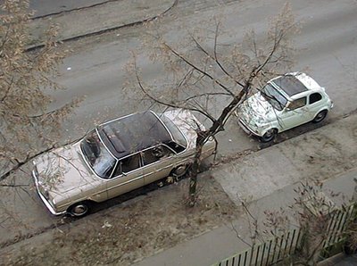 Tipikus nyár reggeli kép, Gyarmat u. 44., 2000: Fityó, Nagy úr Astrája, a Mercink, Kati pedig indul dolgozni a kis Romettel