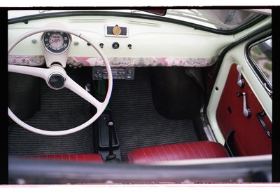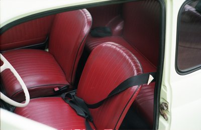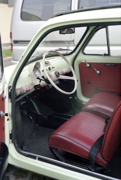 Egy teljes Fiat 500 L-belső került bele, amit Forlíban bontottam ki egy Fityóból, ami kettő között volt szétlapítva, felstócolva