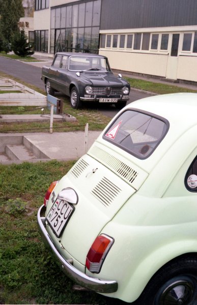 Életünk egyik csúcspontja: Kati autója, én autóm, köztük az ünnepi verdánk, a gyári fényezéses, végig magyar Alfa Giulia