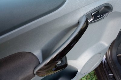 Szűk, de jópofa az utastér. Mondjuk a fémnek látszó műanyag karikákat akár ki is hagyhatták volna