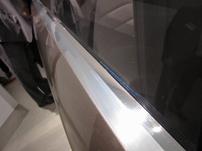 Az első szélvédő alsó sarkától a hátsó ajtó hátsó sarkáig ívelő díszléc egyetlen anyagból áll, sehol egy illesztés. A gép, amelyik egy nagy alu táblából kimarta az egyszerűnek tűnő formájú alkatrészt, hét napig matatott a nyersanyagon