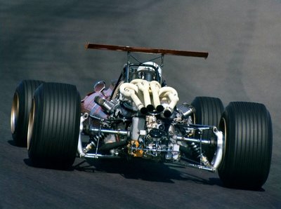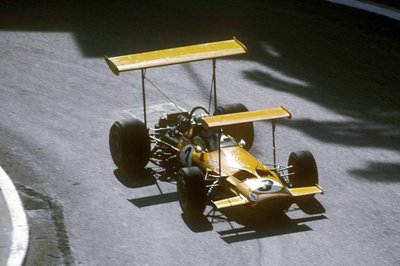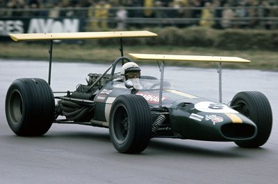 Graham Hill, Lotus 49B (1969). A leszorítóerővel kísérletezés hőskora. Ha a vékony pálcák eltörtek minden tapadást elvesztett.