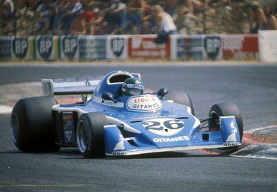 Jacques Laffite a franciásan elegáns, de nem különösebben sikeres Ligier JS5-ben (1976)