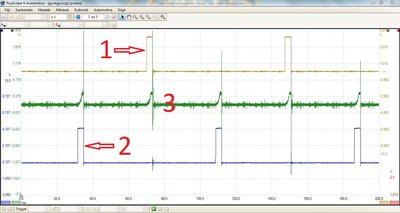 1: 1-es és 4-es primerkör vezérlőjele; 2: 2-es és 3-as primerkör vezérlőjele; 3: valami