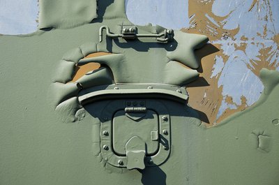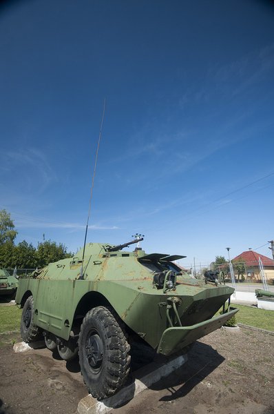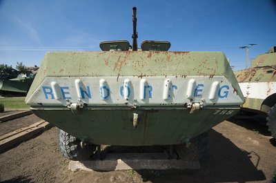 A BRDM-2 úszóképes felderítő harcjármű - a két kis kerék-pár középen a felakadást hivatott megakadályozni terepen
