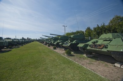Javarészt orosz haditechnikát láttunk, a Magyar Honvédség egykori készletéből. Ez a hátsó sor tucatnyi késői T-34-essel indul