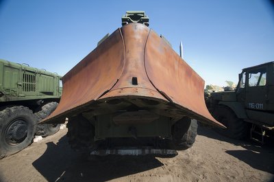 A BAT-M szörnyű öszvér: T-54 alváz, szélesített ZiL 157 fülke és egy hatalmas, eke-forma földtoló kombinációja. Elsődleges feladata az út megtisztítása lett volna az előrenyomuló csapatok előtt, akár egy nukleáris támadás helyszínén is (túlnyomásos kabinj