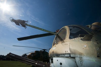 A Mi-24D harci helikopter Jakusev-Borzov 12,7 milliméteres forgócsöves gépágyúja ma is félelmetes látvány, bár ezzel a példánnyal aligha lőnek már. A híres Bakony Harcihelikopter ezredet 2004-ben szüntették meg