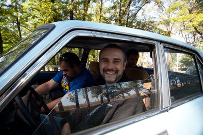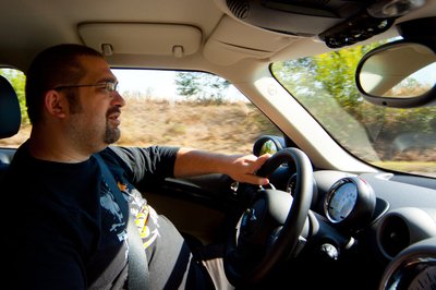 Az egyetlen mai autót Andróczi Balázs, hírszerkesztő és autós encklopédia vezette. Kicsit idegenül hatott körülötte a Mini Countryman