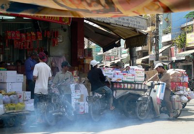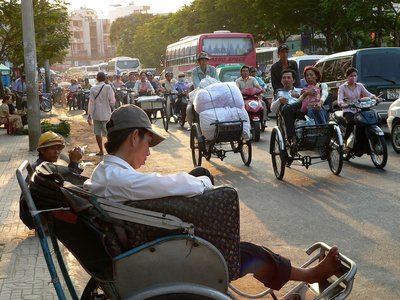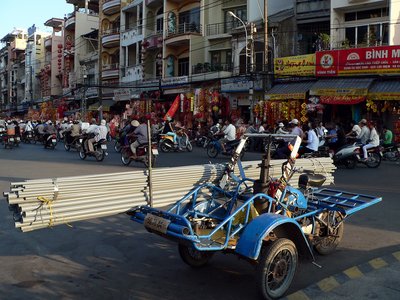 Mindenből egy kicsi, ami összesen már elég sok: ezen a saigoni fotón együtt láthatjuk szinte az összes jellegzetes vietnami járművet. A korábban fontos taxi-szerepet játszó riksák mára háttérbe szorultak, a riksások leginkább a turisták megvágásából, és á