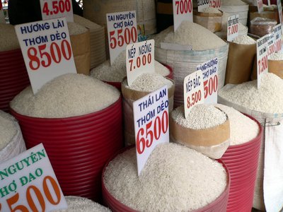 Sok a rizsa, és sokféle: választék egy gabonaüzletben. Ázsia legtöbb országához hasonlóan Vietnamban is a rizs az étkezés alapja. Az ország a világ második legnagyobb exportőre Thaiföld után, a hegyvidékeken és a Mekong-deltában kialakított rizsföldeken t
