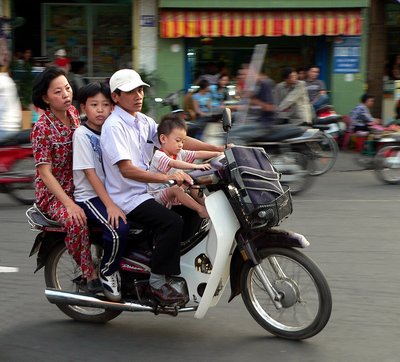 Honda Dream, a megvalósult álom. Autó híján a robogók a legtöbb családban mindenes járműként szolgálnak, és egyúttal univerzális munkaeszközök is a legtöbb kisvállalkozásban. Mindent visznek, öt malactól nyolcvan műanyag marmonkannáig, és egy négy-ötfős c