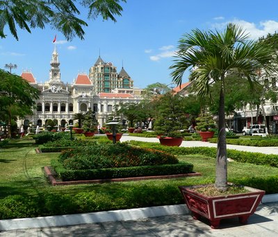 A saigoni városi tanács épülete előtti, szépen gondozott park a nyugalom szigete a közel nyolcmilliós, zsúfolt megalopolisz közepén. Még a franciák építették városházának az 1900-as évek elején, és funkcióját máig megtartotta. A téren áll a város modern k