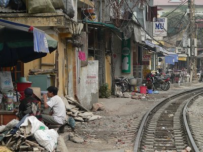 Az itt élő hanoiak elmondhatják József Attilával: „Vasútnál lakom. Erre sok vonat jön-megy és el-elnézem, hogy’ szállnak fényes ablakok …”. A vietnami sínpályák hossza összesen 2650 km, a legforgalmasabb vonal Hanoit köti össze Saigonnal. Egy megfelelő je