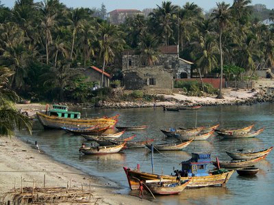 Nemcsak festményeken ragyognak a színek Vietnamban, de a valóságban is: a 3500 kilométer hosszú tengerparton olyan festői szépségű helyekre bukkan a látogató, mint ez az öböl Mui Ne közelében. A fölötte elterülő kis falu lakói főleg halászatból, illetve a
