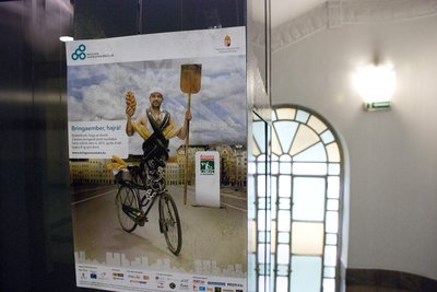 A kormányzati bringáslobbi a minisztériumi liften kampányol