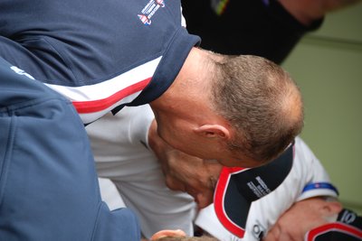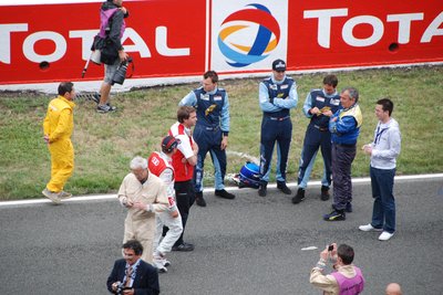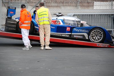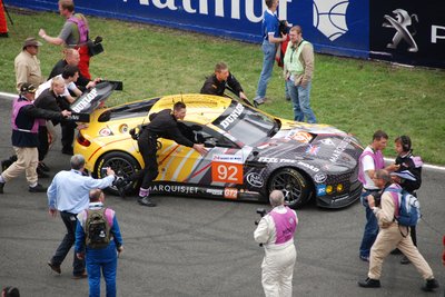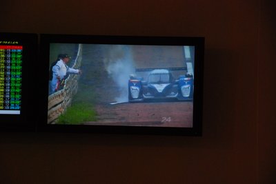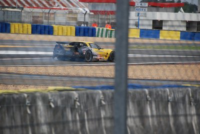 Ez a Corvette durván 180-as tempónál vesztette el a tapadást és durrant bele a palánkba. Kicsit eltartott, de visszajött a boxba, ahol óriási pajszerekkel és kalapácsokkal verték le róla a maradék műanyagot. Aztán még kiment pár körre, de nem bírta végig.