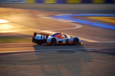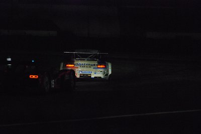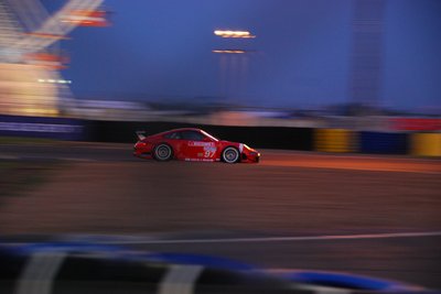 Hajnal, de nagyon. Egy GT2-es Porsche zúz el a célegyenes felé
