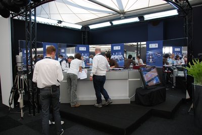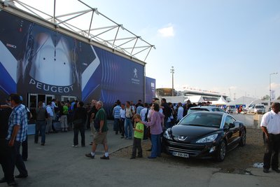 Végre odabent. A Peugeot központi épületének teraszáról remek kilátás nyílt a célegyenesre
