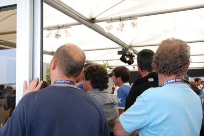 10.30. Még mindig a bebocsátást várjuk a boxba. Alig pár kiváltságos léphetett csak be