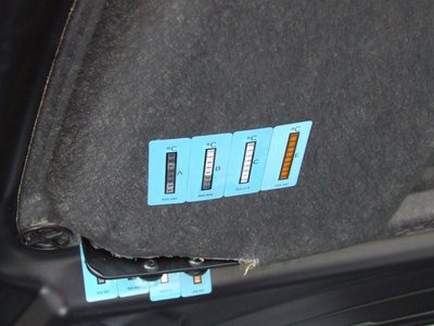 Hőmérséklet jelző matricák a géptér kritikus pontjain