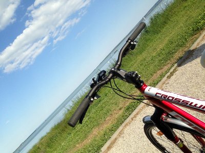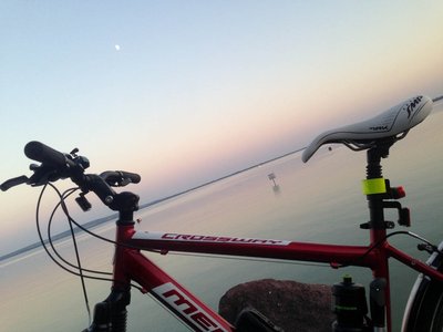 A biciklis pályafutásom eddigi csúcsa, a Libás strandig tartó egész napos kirándulás. Ott figyel a szép új TRK nyereg