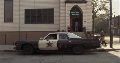 A Blues Brothers 2000 Bluesmobile-ja, John Goodmannal az anyósülésen