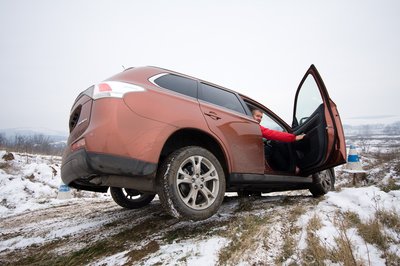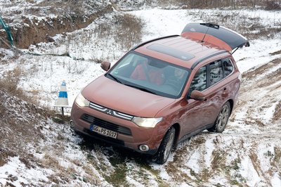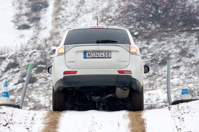 Lehet kacagni és gúnyolódni, de a tény attól még tény marad: az Outlander SUV-mivoltához képest meglepően durva terepen is elboldogult. Pedig csak fix 50:50. amit tud.