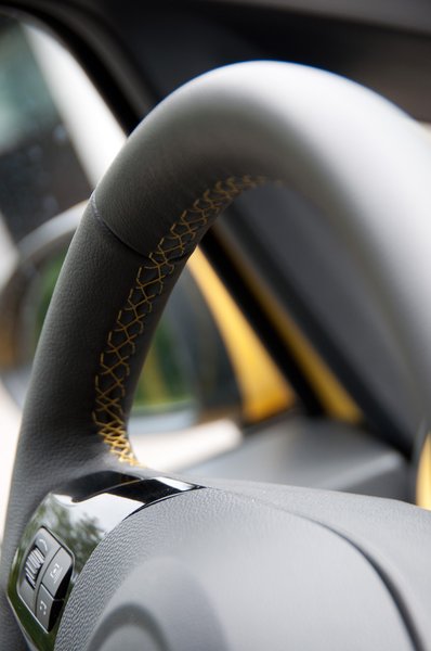 Három küllős sportkormány, a fejegység vezérlőgombjaival