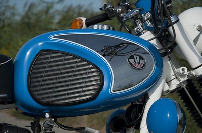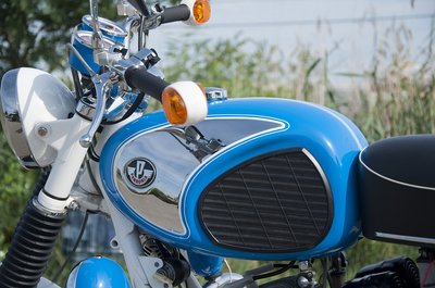 A kék fényszórókat eredetileg az NDK-ban gyártottak, de azokhoz a kék üveg már fellelhetetlen, így méretben egyező yamahások vannak a bukóvason