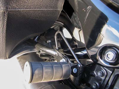 A dobozon bemélyedés az utas lábának, a lábtartó sarkánál köracélból hajlított védő