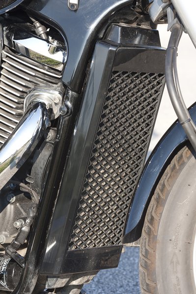A visszajelzőket sikerült igazán rossz helyre rakni, de egy choppernél ez érdem. Hogy a tankon a krómozott inzert is műanyag, az már kevésbé
