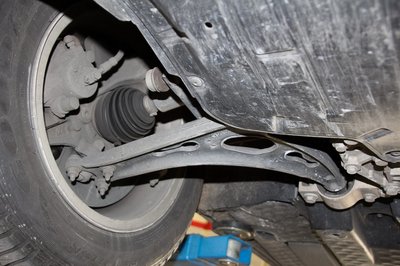 Az ilyen, kifli formájú lengőkarok, hátul nagy, lágy szilenttel fékezésnél összetartásra húzzák az első futóművet