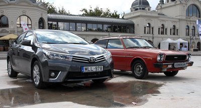 Sikerült összefotózni az előző Corollával: az új hosszabb, nagyobb tengelytávú, de fél centivel alacsonyabb. És csak 0,27 az alaktényezője, 0,29 helyett