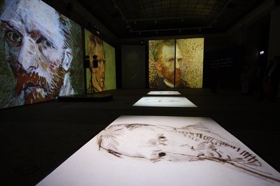 Ez már a virtuális van Gogh-prezentáció, az összes létező falfelületen. A ránk néző öregember maximum 37 éves lehetett, mivel ilyen idősen lett öngyilkos