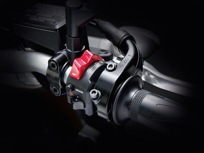 A vészleállító piros gombjába integrálták az önindítót. Alatta a gyújtástérképválasztó